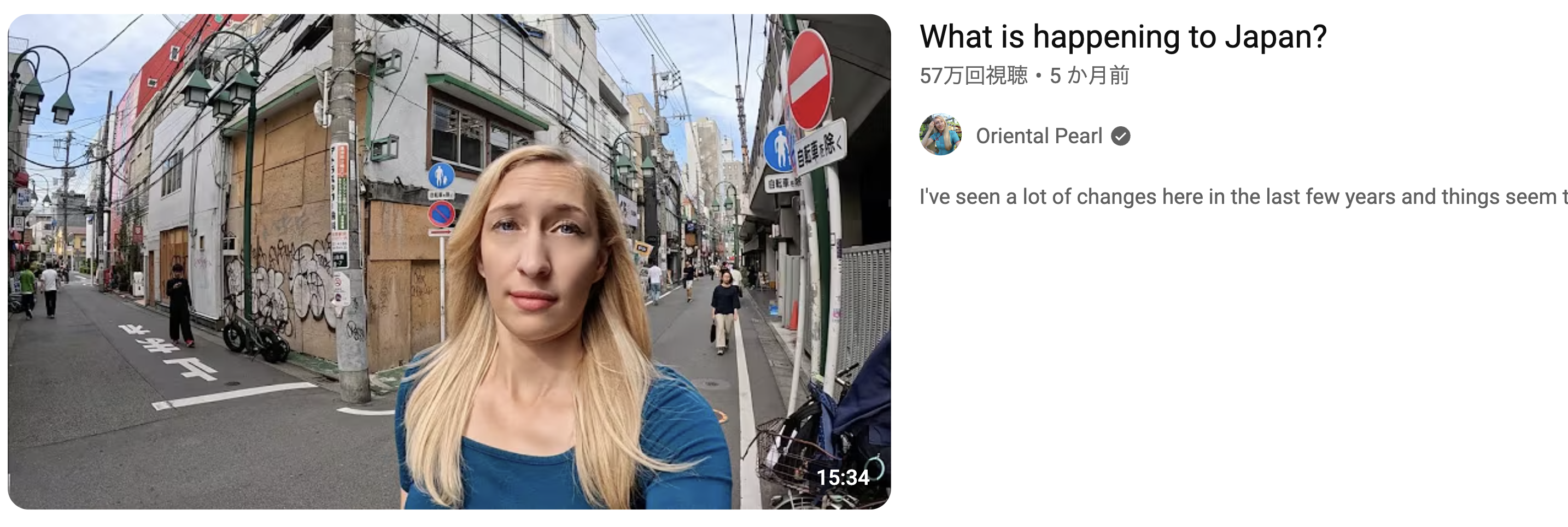 「Oriental Pearl」はイギリス人女性YouTuberのチャンネルで、登録者数145万人。「日本が崩壊している」「外国人が日本を壊している」系の動画を量産しています。問題になったのは、東京の町並みの様子を画像で加工で追加し、「町中に落書きが増え、日本が荒廃している」という印象を意図的に作り出していたことです。